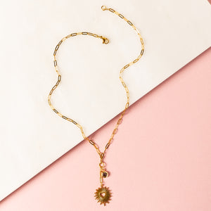 Waterproof "Imperméable” Gold Asymmetrical Starburst Necklace with Birthstone